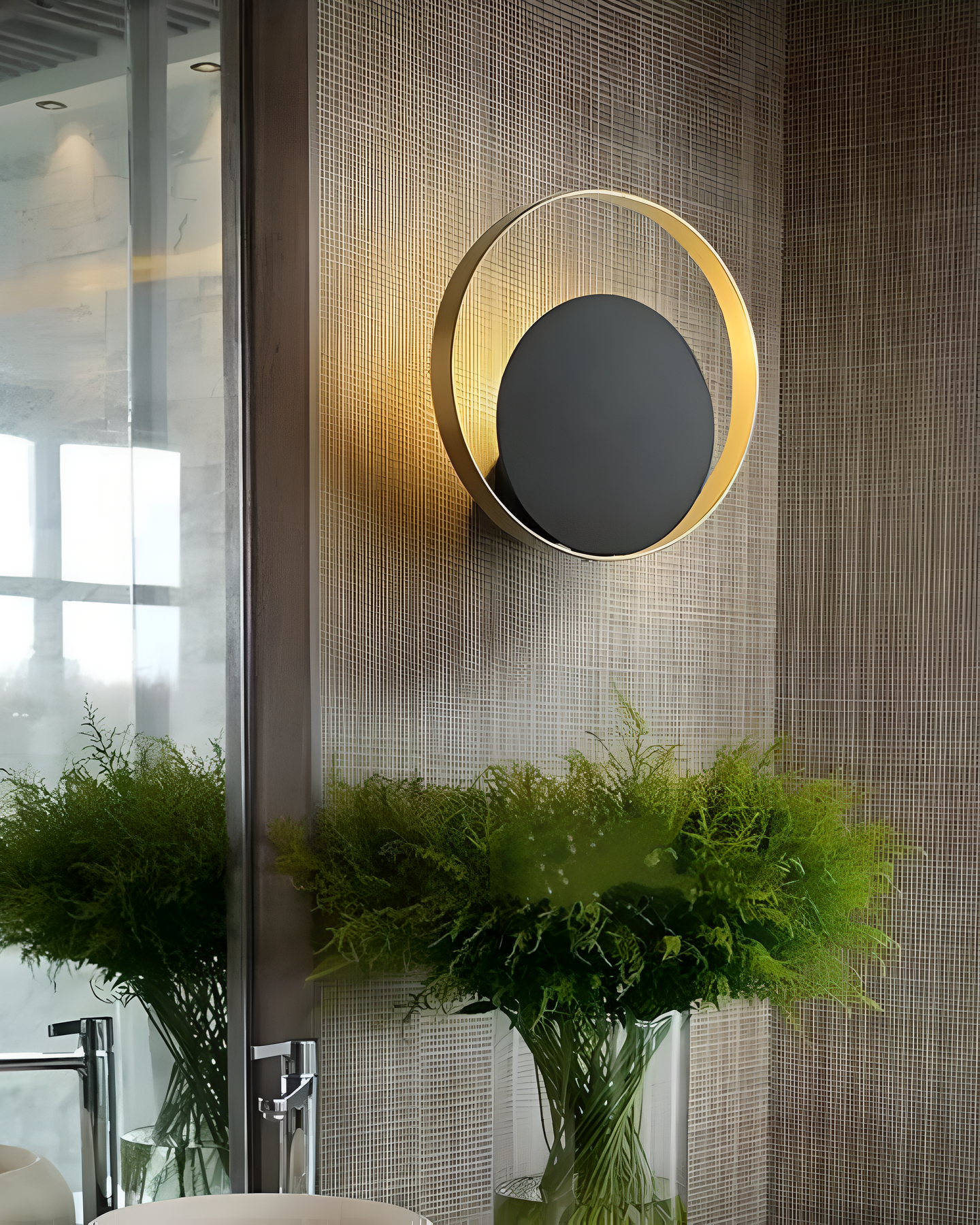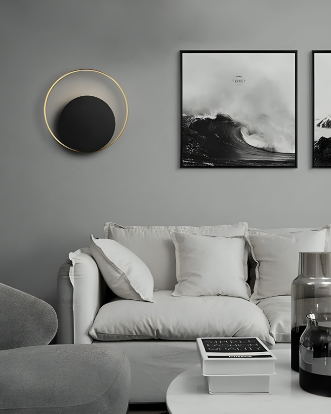 Breng een vleugje elegantie in uw interieur met de betoverende MaanLuxe Wandlamp. Deze unieke wandlamp combineert modern design met tijdloze klasse. Geïnspireerd door de serene schoonheid van de maan, biedt het een harmonieuze cirkelvorm met een luxueuze gouden afwerking. De zachte, sfeervolle verlichting creëert een warme en uitnodigende ambiance, perfect voor Japandi-geïnspireerde interieurs of moderne ruimtes.