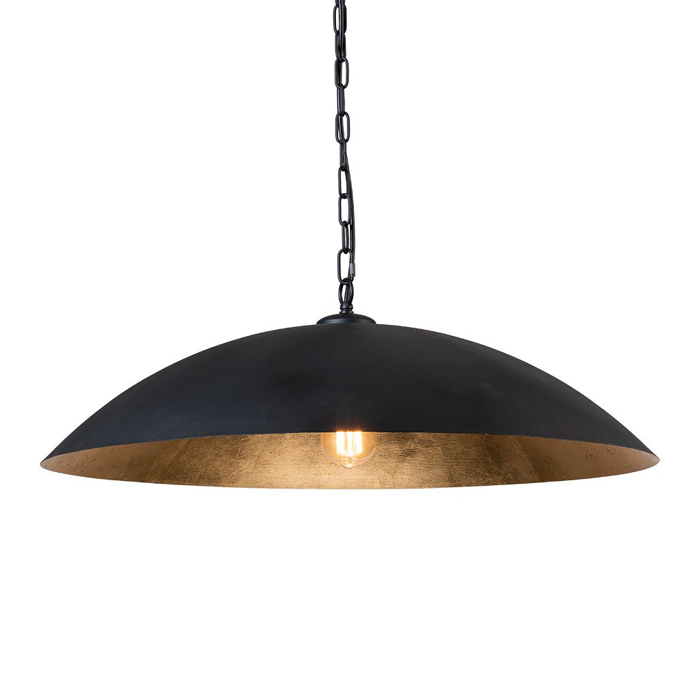 Moderne Boerderij • Metaal Koepel Hanglamp Zwart+Gouden Afwerking • Verstelbare Ketting